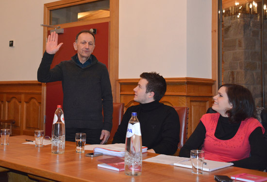 (Joseph Denis prête serment sous les yeux de ses jeunes collègues Thibault Willem et Aline Lebrun)