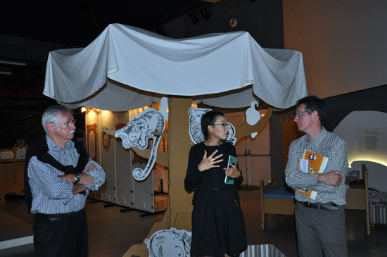 (José Lutgen, Delphine Didriche et Patrick Adam dans une des salles réservées à l'exposition et aux modules didactiques consacrés au sommeil)